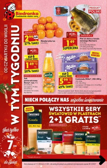 {loadposition linkBiedronka2} 'W tym tygodniu' - nowa gazetka promocyjna sieci sklepów Biedronka. Polecane promocje z gazetki sieci Biedronka: Mandarynki 1 kg - 2,99 zł. Sok pomarańczowy Riviva 6x1 L - 8,94 zł*. Czekolada Milka 3x300 g - 17,97 zł*.…