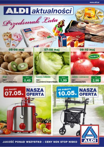 {loadposition linkAldi} Nowa gazetka promocyjna Aldi - "Przedsmak lata". Polecane promocje z gazetki Aldi: Sokowirówka QUIGG 800 W - 139 zł. Metalowa figura ogrodowa - 49,99 zł. Ochrona przed owadami na okno - 9,99 zł. Oferta ważna od…