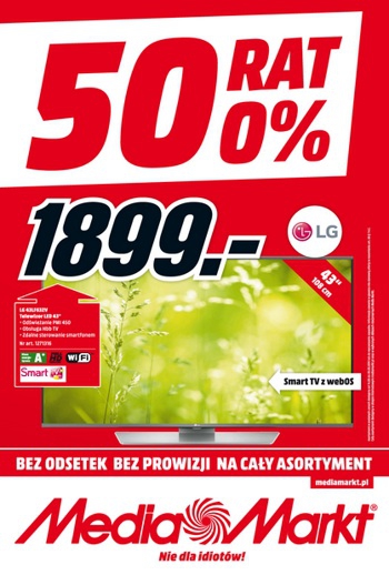 {loadposition linkMediaMarkt} Nowa gazetka promocyjna Media Markt - "50 rat 0%". Polecane promocje z gazetki Media Markt: Telewizor LED 43" LG 43LF632V - 1899 zł. Telewizor LED 32" SAMSUNG UE32J4100 - 999 zł. Soundbar PHILIPS HTL3142S - 899 zł.…