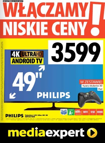 {loadposition linkMediaExpert} Nowa gazetka promocyjna Media Expert - "Włączamy niskie ceny!". Polecane promocje z gazetki Media Expert: Telewizor 4K Ultra HD 49" PHILIPS 49PUS7909 - 3599 zł. Soundbar SAMSUNG HW-J550/EN - 1299 zł. Wieża PHILIPS BTM 1360 - 459…