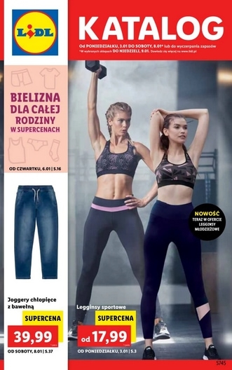 {loadposition linkLidl} Nowa gazetka promocyjna sieci sklepów Lidl. Polecane promocje z gazetki sklepów Lidl: Legginsy sportowe damskie Crivit - od 17,99 zł. Bluza dresowa damska Crivit - 54,90 zł. Spodnie dresowe damskie Esmara - 34,99 zł. Oferta…