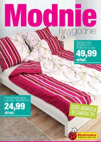 {loadposition linkBiedronka} Nowa gazetka promocyjna sieci handlowej Biedronka - "Aktywny wypoczynek". Polecane promocje z gazetki sieci Biedronka: Komplet pościeli z kory - 49,99 zł. Prześcieradło z jerseyu z gumką - 24,99 zł. Spodnie jeansowe dziecięce - 34,99 zł. …