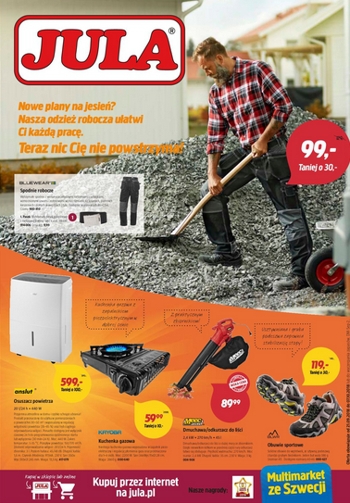 {loadposition linkJula} 'Nowe plany na jesień? Nasza odzież robocza ułatwi Ci każdą pracę/ Teraz nic Cię nie powstrzyma!' - nowa gazetka promocyjna sieci handlowej Jula. Polecane promocje z gazetki Jula: Spodnie robocze Bluewear - 99 zł. Osuszacz powietrza…