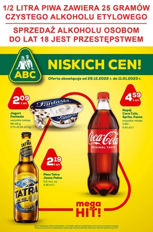 {loadposition linkABC} 'ABC niskich cen!' - nowa gazetka promocyjna sieci sklepów ABC. Polecane promocje z gazetki ABC: Jogurt Danone Fantasia 98-118 g - 2,09 zł. Napój Coca-Cola, Fanta lub Sprite 0,85 L - 4,59 zł. Piwo Tatra Jasne Pełne…