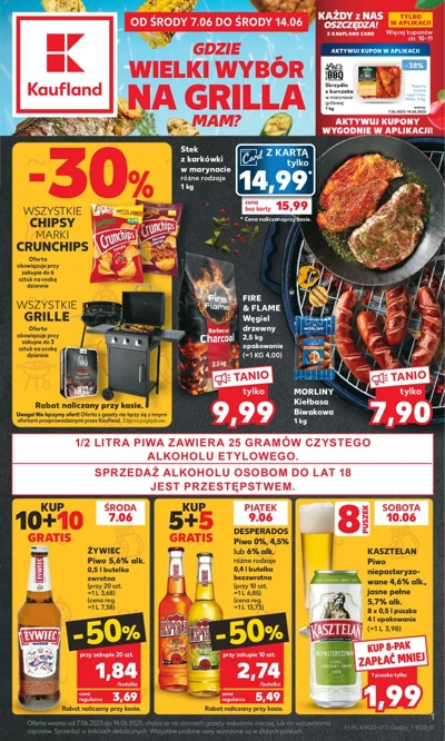 'Gdzie wielki wybór na grilla mam? - nowa gazetka promocyjna sieci marketów Kaufland. Polecane promocje z gazetki Kaufland: Stek z karkówki w marynacie na grill - 14,99 zł*. Kiełbasa biwakowa Morliny 1 kg - 7,90 zł. Węgiel drzewny Fire&Flame…
