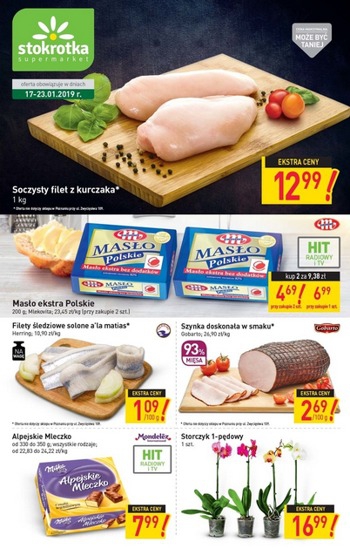 Nowa gazetka promocyjna sieci sklepów Stokrotka. Polecane promocje z gazetki Stokrotka: Soczysty filet z kurczaka 1 kg - 12,99 zł. Filety śledziowe solone a'la matias 100 g - 1,09 zł. Storczyk 1-pędowy - 16,99 zł. Oferta…