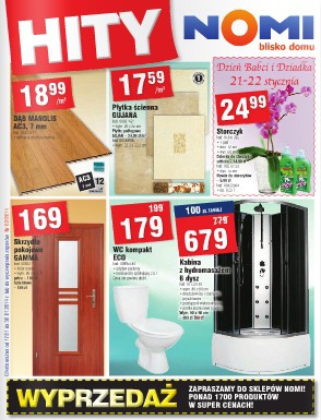 Nowa gazetka promocyjna Nomi - "Hity". Polecane promocje z gazetki Nomi: Storczyk - 24,99 zł. Skrzydło pokojowe GAMMA - 169 zł. Kabina z hydromasażem 6 dysz - 679 zł. Oferta ważna od 17.01 do 30.01 lub do…