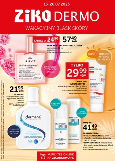 'Piękne ciało w promieniach słońca' - nowa gazetka promocyjna drogerii Ziko Dermo. Polecane promocje z gazetki Ziko Dermo: Antyperspirant Idee Derm Forte lub Sensitive 50 ml - 13,99 zł. Suchy olejek Nuxe Huile Prodigieuse 30 ml - 29,99 zł.…