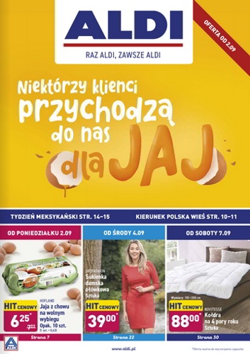 {loadposition linkAldi} 'Niektórzy klienci przychodzą do nas dla jaj' - nowa gazetka promocyjna Aldi. Polecane promocje z gazetki Aldi: Jaja z chowu na wolnym wybiegu Hofland 10 sztuk - 6,25 zł. Sukienka damska ołówkowa Up2Fashion - 39 zł. Kołdra…