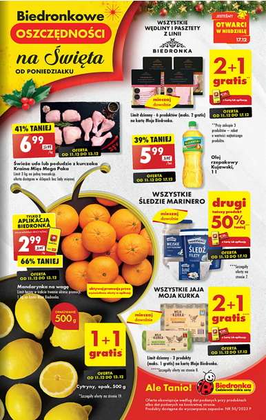 'Biedronkowe oszczędności na święta od poniedziałku' - nowa gazetka promocyjna sieci sklepów Biedronka. Polecane promocje z gazetki sieci Biedronka: Świeże udo lub podudzie z kurczaka Kraina Mięs 1 kg - 6,99 zł*. Olej rzepakowy Kujawski 1 L - 5,99…