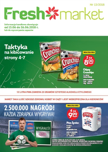{loadposition linkFreshmarket} 'Taktyka na kibicowanie' - nowa gazetka promocyjna sieci sklepów Freshmarket. Polecane promocje z gazetki Freshmarket: Chipsy Crunchips 2x140 g - 8 zł. Piwo Żywiec 4x500 ml - 9,99 zł. Szalik duży Polska - 16,99…