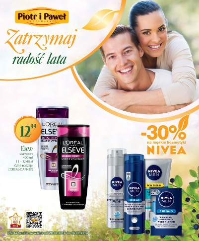 Katalog kosmetyczny sieci handlowej Piotr i Paweł - "Zatrzymaj radość lata". Polecane promocje z katalogu Piotr i Paweł: Szampon do włosów Elseve 400 ml - 12,99 zł. Żel do włosów Taft 150 ml - 7,99 zł. Wkładki Carefree…