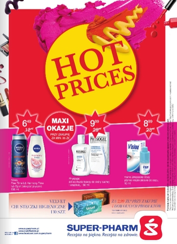 Nowa gazetka promocyjna Super-Pharm - "Hot prices". Polecane promocje z gazetki Super-Pharm: Szampon do włosów Pantene Pro-V 400 ml - 7,99 zł. Farba do włosów Garnier Color Naturals Creme - 9,99 zł. Odżywka do włosów Nivea 200 ml…