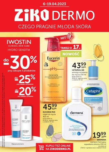 'Czego pragnie młoda skóra' - nowa gazetka promocyjna drogerii Ziko Dermo. Polecane promocje z gazetki Ziko Dermo: Emulsja micelarna do mycia Cetaphil EM 236 ml - 43,99 zł. Olejek do mycia Eucerin PH5 400 ml - 45,99 zł. Szampon…