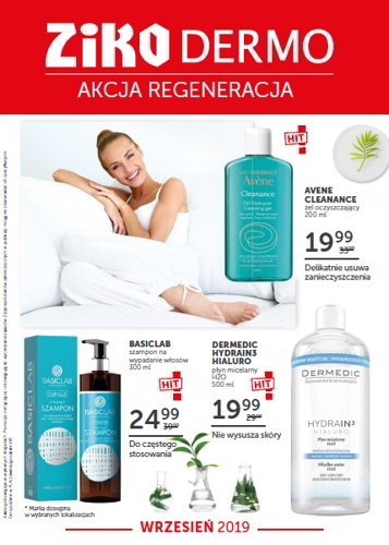 'Akcja regeneracja' - nowa gazetka promocyjna drogerii Ziko Dermo. Polecane promocje z gazetki Ziko Dermo: Żel oczyszczający Avene Cleanance 200 ml - 19,99 zł. Szampon na wypadanie włosów Basiclab 300 ml - 24,99 zł. Płyn micelarny Dermedic…