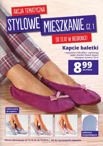 {loadposition linkBiedronka} Nowa gazetka promocyjna sieci handlowej Biedronka - "Stylowe mieszkanie cz.1". Polecane promocje z gazetki sieci Biedronka: Piżama dziecięca - 24,99 zł. Szlafrok damski lub męski - 39,99 zł. Kapcie baletki - 8,99 zł. Oferta ważna od…