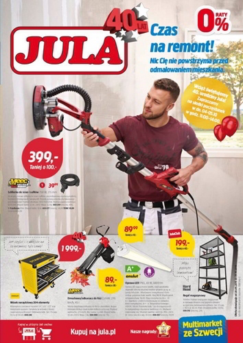 {loadposition linkJula} 'Do dzieła! Mamy 15 tys. artykułów do domu, ogrodu i wypoczynku' - nowa gazetka promocyjna sieci handlowej Jula. Polecane promocje z gazetki Jula: Szlifierka do ścian i sufitów Meec 710 W - 299 zł. Kurtka męska Bluewear…