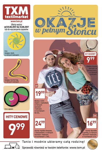 {loadposition linkTXM} Nowa gazetka promocyjna Textil Market - "Okazje w pełnym słońcu". Polecane promocje z gazetki Textil Market: Gładka bluzka damska na ramiączkach - 9,99 zł. Gra Łapacz - 9,99 zł. Gra latający bumerang - 9,99…