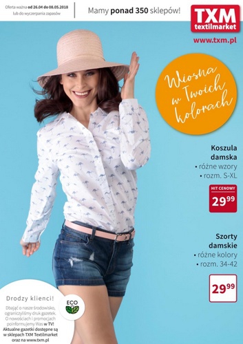 {loadposition linkTXM} 'Wiosna w Twoich kolorach' -nowa gazetka promocyjna sieci sklepów Textil Market. Polecane promocje z gazetki Textil Market: Koszula damska - 29,99 zł. Szorty damskie - 29,99 zł. Tenisówki damskie - 14,99 zł. …