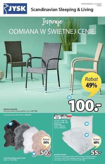'Odmiana w świetnej cenie' - nowa gazetka promocyjna sieci sklepów JYSK. Polecane promocje z gazetki Jysk: Rabat 20-50% na wszystkie meble. Rabat 20-49% na wszystkie rolety. Rabat 20-55% na wszystkie sztuczne rośliny. Oferta ważna…