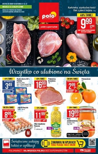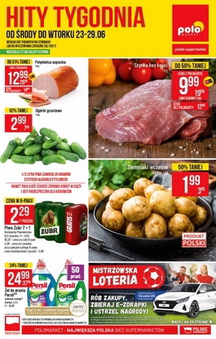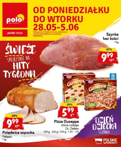 'Hity tygodnia' - nowa gazetka promocyjna sieci sklepów Polo Market. Polecane promocje z gazetki Polo Market: Filet z piersi indyka 1 kg - 9,99 zł. Karkówka bez kości - 9,99 zł. Szynka bez kości 1 kg - 9,99 zł.…