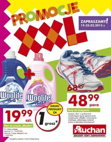 {loadposition linkAuchan} Nowa gazetka promocyjna Auchan - "Promocje XXL". Polecane promocje z gazetki Auchan: Płyn do prania Woolite 2x2 L - 20 zł. Buty do biegania - 48,99 zł. Szynka bez kości 1 kg - 9,99 zł. Oferta…
