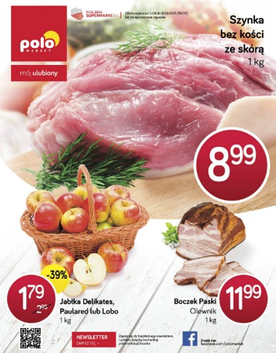 {loadposition linkPoloMarket} Nowa gazetka promocyjna Polo Market. Polecane promocje z gazetki Polo Market: Szynka bez kości ze skórą 1 kg - 8,99 zł. Jabłka 1 kg - 1,79 zł. Boczek paski Olewnik 1 kg - 11,99 zł. Oferta…