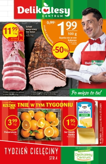 {loadposition linkDelikatesyCentrum} 'Po mięso to tu!' - nowa gazetka promocyjna Delikatesów Centrum. Polecane promocje z gazetki Delikatesów Centrum: Schab wieprzowy bez kości 1 kg - 11,99 zł*. Szynka nie ze wsi Kabanos 100 g - 1,99 zł**. Pomarańcze 1…