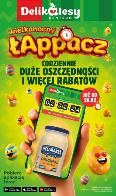 'Wielkanocny Łappacz' - nowa gazetka promocyjna Delikatesów Centrum. Polecane promocje z gazetki Delikatesów Centrum: Szynka wieprzowa bez kości 1 kg - 15,99 zł*. Szynka farmerska Duda 100 g - 2,49 zł. Ser Radamer Serenada 100 g - 2,85 zł.…
