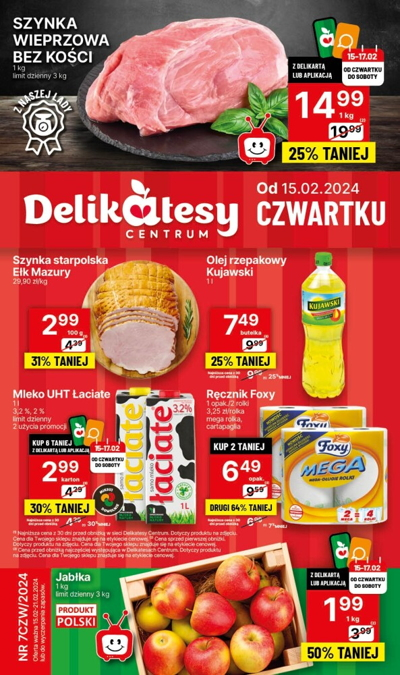 Nowa gazetka promocyjna Delikatesów Centrum. Polecane promocje z gazetki Delikatesów Centrum: Szynka wieprzowa bez kości 1 kg - 14,99 zł*. Szynka staropolska Ełk Mazury 100 g - 2,99 zł. Olej rzepakowy Kujawski 1 L - 7,49 zł. *…