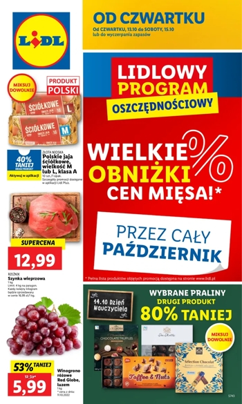 'Od czwartku' - nowa gazetka promocyjna sieci sklepów Lidl. Polecane promocje z gazetki sklepów Lidl: Świeże jaja Złota Nioska klasa M 10 sztuk - 3,99 zł. Kiełbasa biała parzona 500 g - 4,99 zł*. Szynka wieprzowa Rzeźnik 1 kg -…