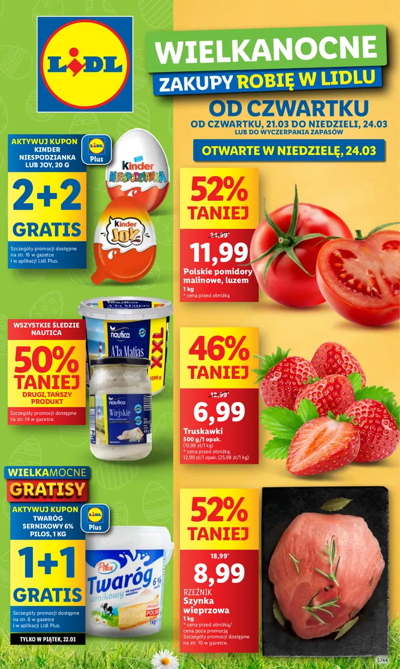 'Od czwartku' - nowa gazetka promocyjna sieci sklepów Lidl. Polecane promocje z gazetki sklepów Lidl: Polskie pomidory malinowe 1 kg - 11,99 zł. Truskawki 500 g - 6,99 zł. Szynka wieprzowa Rzeźnik 1 kg - 8,99 zł.
