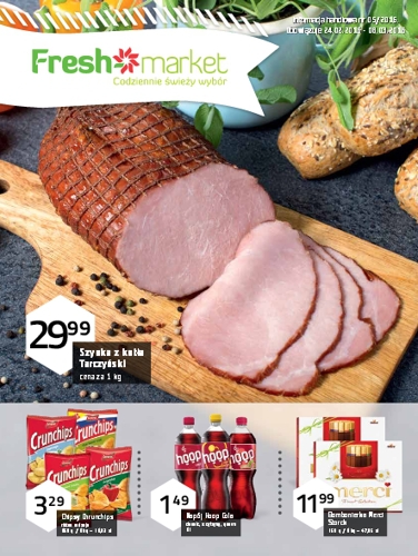 {loadposition linkFreshmarket} Nowa gazetka promocyjna Freshmarket. Polecane promocje z gazetki Freshmarket: Szynka z kotła Tarczyński 1 kg - 29,99 zł. Chipsy Chrunchips 150 g - 3,29 zł. Napój Hoop Cola 1 L - 1,49 zł. Oferta ważna od…