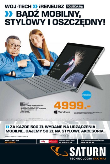 {loadposition linkMediaMarkt} Nowa gazetka promocyjna Saturn - "Bądź mobilny, stylowy i oszczędny!". Polecane promocje z gazetki Saturn: Laptop i tablet 2w1 MICROSOFT Surface Pro i5-7300U/4/128/HD620/W10P - 4999 zł. Tablet LENOVO Tab3 A7-10I ZA0S0027PL/015PL/011PL - 449 zł. Tablet APPLE iPad…