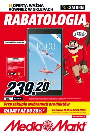 {loadposition linkMediaMarkt} Nowa gazetka promocyjna Saturn - "Technologiczne dodatki od Saturna". Polecane promocje z gazetki Saturn: Laptop LENOVO Ideapad 100-15IBD 80QQ01G9PB - 1999 zł Tablet LENOVO Tab3 A7-10I ZA0S0027PL/015PL/011PL - 449 zł Tablet SAMSUNG Galaxy Tab S3 9.7 LTE…