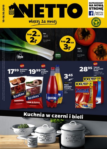 {loadposition linkNetto} Nowa gazetka promocyjna Netto - "Kuchnia w czerni i bieli". Polecane promocje z gazetki Netto: Por 2 sztuki - 2 zł. Kaki 2 sztuki - 3 zł. Tabletki do zmywarki Somat Classic 110 sztuk - 28,95…