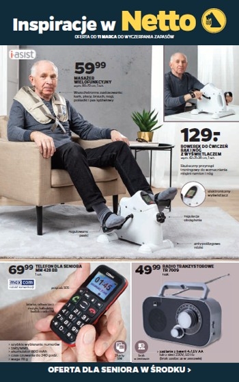 {loadposition linkNetto} 'Inspiracje w Netto' - nowa gazetka promocyjna sieci sklepów Netto. Polecane promocje z gazetki Netto: Masażer wielofunkcyjny - 59,99 zł. Rowerek do ćwiczenia rąk i nóg z wyświetlaczem - 129 zł. Telefon dla seniora MM 428 BB…