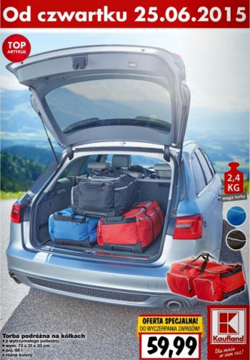 {loadposition linkKaufland} Nowa gazetka promocyjna marketu Kaufland - "TOP-Artykuł". Polecane promocje z gazetki Kaufland: Torba podróżna na kółkach z wytrzymałego poliestru - 59,99 zł. Letni płyn do spryskiwaczy 5 L - 5,99 zł. Telefon komórkowy Maxcom MM131 - 44,99…