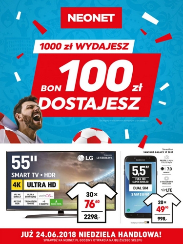{loadposition linkNeonet} '1000 zł wydajesz, bon 100 zł dostajesz' - nowa gazetka promocyjna Neonet. Polecane promocje z gazetki Neonet: Telewizor 4K Ultra HD 55 cali LG 55UJ634V - 2298 zł. Smartfon Samsung Galaxy J7 2017 - 998…