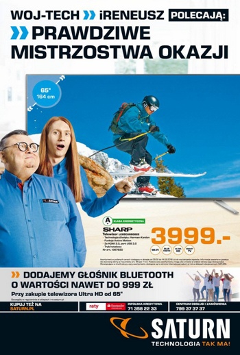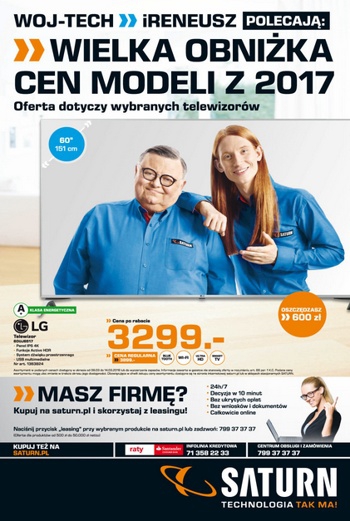 {loadposition linkMediaMarkt} 'Prawdziwe mistrzostwa okazje' - nowa gazetka promocyjna Saturn. Polecane promocje z gazetki Saturn: Telewizor 4K Ultra HD 65 cali SHARP LC-65CUG8062E - 3999 zł. Telewizor 4K Ultra HD 65 cali LG 65UJ620V - 3999 zł. Telewizor 4K Ultra…