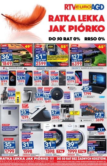 'Ratka lekka jak piórko' - nowa gazetka promocyjna RTV EURO AGD. Polecane promocje z gazetki RTV EURO AGD: Telewizor 4K Ultra HD 49 cali LG 49UJ634V - 1849 zł. Telewizor 4K Ultra HD 55 cali Samsung UE55MU6172 -…