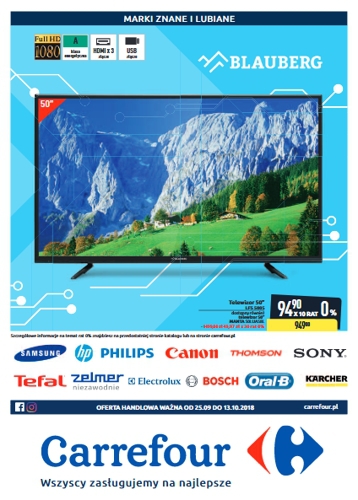 {loadposition linkCarrefour} 'Marki znane i lubiane' - nowa gazetka promocyjna sieci marketów Carrefour. Polecane promocje z gazetki Carrefour: Telewizor LED 50 cali Blauberg LFS 5005 - 949 zł. Smartfon Samsung Galaxy J3 - 619 zł. Powerbank PG850 - 99…