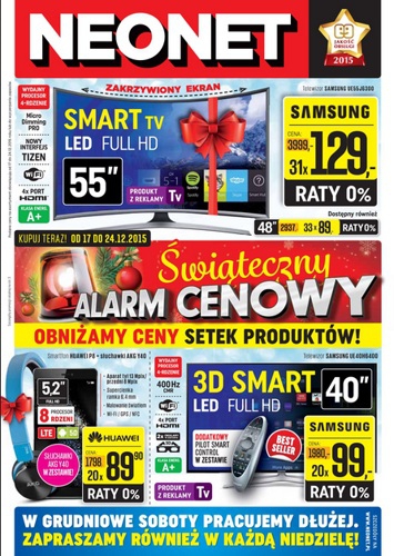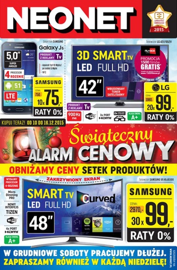 {loadposition linkNeonet} Nowa gazetka promocyjna Neonet - "Świąteczny alarm cenowy - obniżamy ceny setek produktów!". Polecane promocje z gazetki Neonet: Smartfon Samsung Galaxy J1 - 750 zł. Telewizor LED 3D 42" LG 42LF652V - 1980 zł. Telewizor Curved TV…