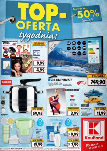 {loadposition linkKaufland} Nowa gazetka promocyjna marketu Kaufland - "TOP-Oferta tygodnia". Polecane promocje z gazetki Kaufland: Telewizor LED 32 cale Blaupunkt - 699 zł. Uchwyt ścienny do telewizorów i monitorów - 12,99 zł. Telefon komórkowy MyPhone 6310 - 69,99 zł.…