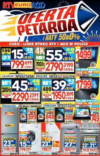Nowa gazetka promocyjna RTV EURO AGD - "Oferta petarda i raty 50x0%". Polecane promocje z gazetki RTV EURO AGD: Telewizor LED 32" Blaupunkt BLA-32/148I-GB-11B-HBUKP-EU - 799 zł. Laptop Lenovo IdeaPad 100 15 N3540 4GB 500GB W8.1 - 1499…
