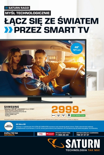 {loadposition linkMediaMarkt} Nowa gazetka promocyjna Saturn - "Łącz się ze Światem przez Smart TV". Polecane promocje z gazetki Saturn: Telewizor LED 48" SAMSUNG UE48JU6400 - 2999 zł Telewizor LED 32" BLAUPUNKT BLA-32/133I-WB-11B-HBKU-EU - 799 zł Telewizor LED 43" LG…