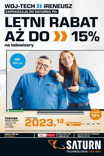 {loadposition linkMediaMarkt} Nowa gazetka promocyjna Saturn - "Letni rabat aż do 15%". Polecane promocje z gazetki Saturn: Telewizor LED 49 cali TOSHIBA 49U6763DG - 2299 zł. Telewizor LED 32 cale BLAUPUNKT BLA-32/138M-GB-11B4-EGBQPX-EU - 949 zł. Telewizor LED 55 cali…