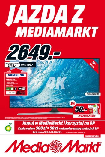 {loadposition linkMediaMarkt} Nowa gazetka promocyjna Media Markt - "Jazda z Media Markt". Polecane promocje z gazetki Media Markt: Telewizor 4K Ultra HD 50 cali SAMSUNG UE50MU6102K - 1599 zł. Telewizor LED 43 cale LG 43LJ500V - 1429 zł.…