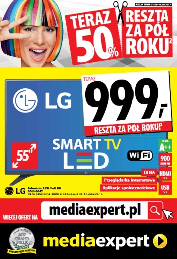 {loadposition linkMediaExpert} Nowa gazetka promocyjna sieci sklepów Media Expert - "Teraz 50% reszta za pół roku". Polecane promocje z gazetki Media Expert: Telewizor LED 55 cali LG 55LH6047 - 1998 zł. Telewizor LED 32 cale Philips 32PHT4112/12 - 899,99…