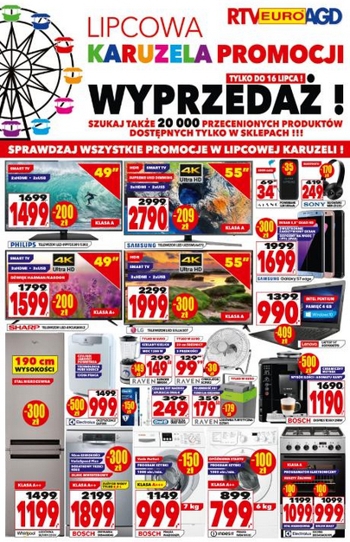 'Lipcowa karuzela promocji' - nowa gazetka promocyjna RTV EURO AGD. Polecane promocje z gazetki RTV EURO AGD: Telewizor LED 49 cali Philips 49PFS5301/12 - 1499 zł. Telewizor 4K Ultra HD 55 cali Samsung UE55MU6472 - 2790 zł. …